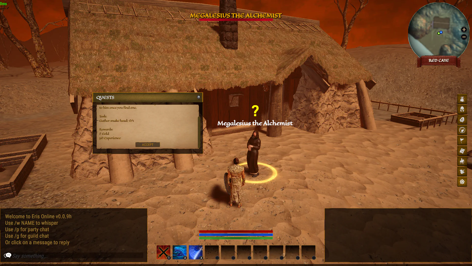 Quests have been added to the game. There are two types of quests, one is to kill X amount of monsters and the other is to gather X amount of items. The quests will give you a continual stream of tasks to complete to make leveling up a bit more interesting.